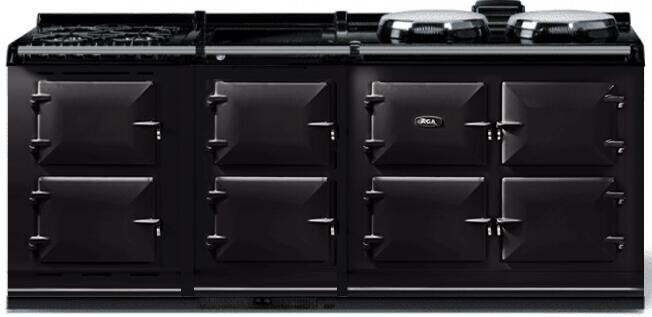 In addition to all the features of your main AGA eR7 100 range, this 210 model configuration provides ample cooking space with slow cook and warming ovens, a large warming plate atop one of the hotcupboards, as well as an additional conventional oven with electric broiler, convection oven with fan, and 4-top gas burners.Read More