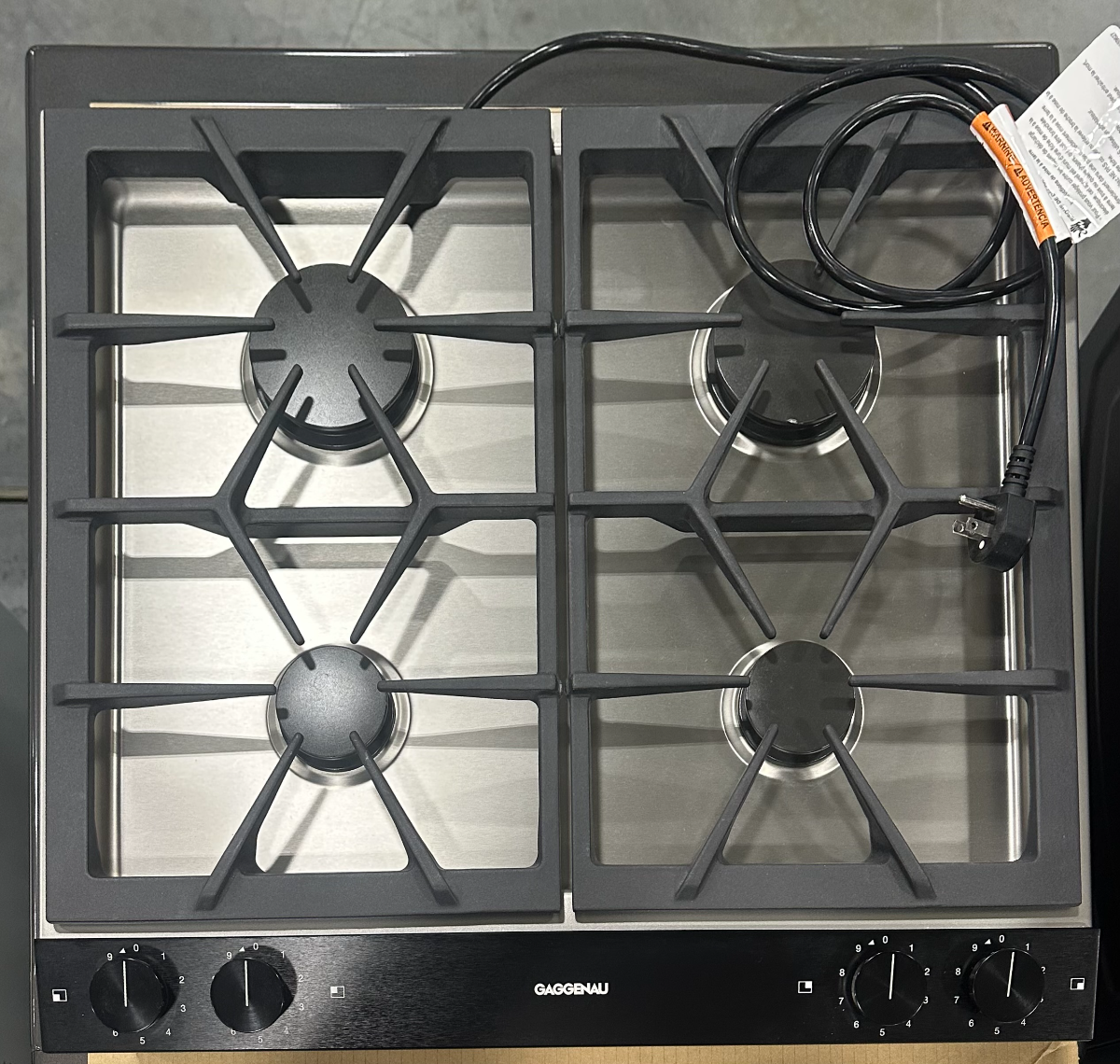 Electric ignition of all burners. Simply press the knob, turn it and hold it there until a stable flame burns