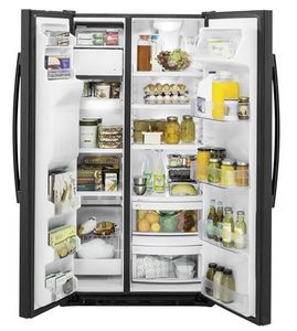 GE 36-inch 21.9 cubic foot black counter depth side by side refrigerator offers organized storage and efficient cooling. Its side by side design provides easy access to fresh and frozen items, while adjustable shelves help maximize space for everyday convenience and usability.Read More