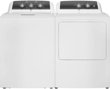 GE® White Laundry Pair with a 4.3 cu. ft. capacity top load washer and a 6.2 cu. ft. capacity front load electric dryer.Read More