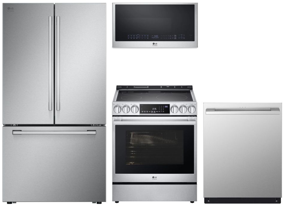 LG Studio Electric Kitchen Package includes: LG Studio 26.50 Cu. Ft. PrintProof™ Stainless Steel Counter Depth French Door Refrigerator, LG Studio 30" Stainless Steel Slide In Electric Range, LG Studio 1.7 Cu. Ft. Stainless Steel Over the Range Microwave, and a LG Studio 24" PrintProof™ Stainless Steel Top Control Built In DishwasherRead More