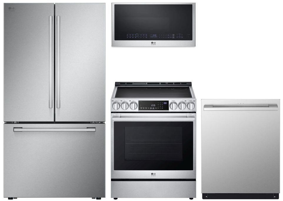 LG Studio Electric Kitchen Package includes: LG Studio 26.50 Cu. Ft. PrintProof™ Stainless Steel Counter Depth French Door Refrigerator, LG Studio 30" PrintProof™ Stainless Steel Slide In Induction Range, LG Studio 1.7 Cu. Ft. Stainless Steel Over the Range Microwave, and a LG Studio 24" PrintProof™ Stainless Steel Top Control Built-in DishwasherRead More