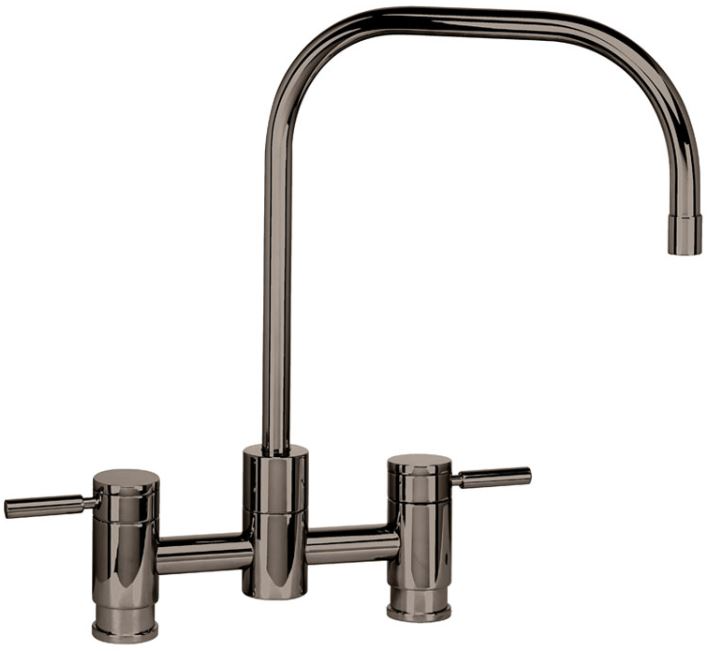 The Fulton Bridge Faucet is a sophisticated, modern design. The contemporary style Bridge Faucet mounts to the sink or kitchen countertop and has a built-in diverter for connection to optional sink side sprayer. The elegant, long reaching, 2-bend spout and two-handled lever design is made from eco-friendly solid brass or stainless steel.Read More