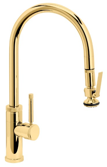 Counterbalanced weight on spray hose allows smooth pull out and prevents snap back.
